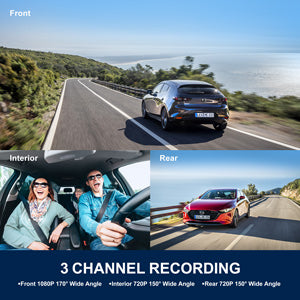 - Front+Inside+Rear Resolution: 1080P+720P+720P; Front+Inside Resolution: 1080P+720P