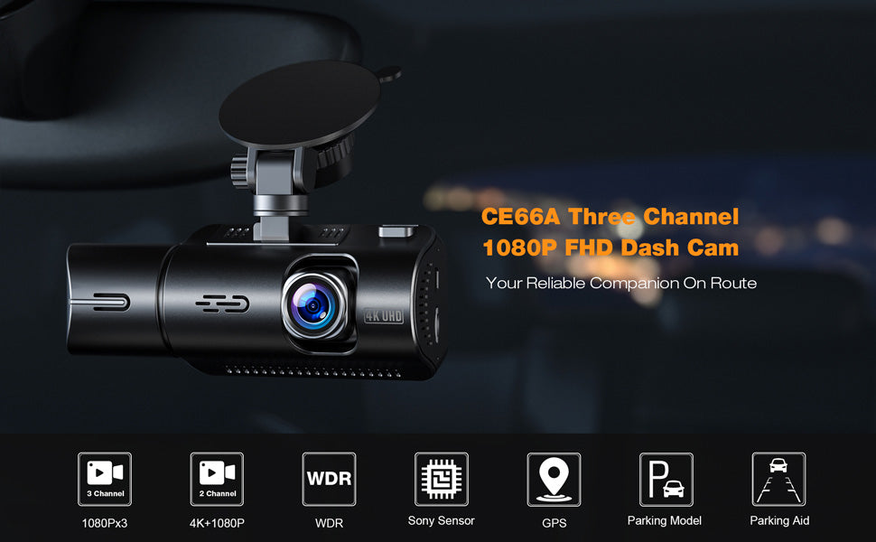3-Channel Dash Cam records the front at UHD 1440P, the inside cabin, and the behind of the car at FHD 1080P resolution. Dash Cam CE66A featured generally decent video and audio quality, with no discernable lens distortion. Giving you peace of mind inside and outside of your vehicle.Perfect for Uber/Taxi/Rideshare drivers or people who need to record both scenery and happy time with your families.