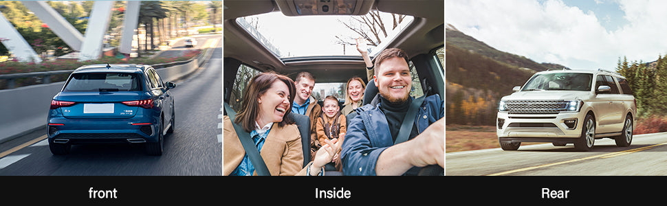 【4K UHD Front Dash Cam 】- While on front and rear dual recording mode, the dash camera's front camera can up to REAL 4K(2160p@30fps), the cabin can up to 1080P. Simultaneously record and display the road in front, inside the cabin. It can clearly capture the detail of license plates and road signs then provide sharp, high-quality videos/images and powerful evidence in an accident.
