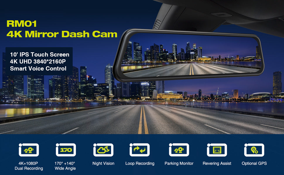 【4K UHD Dual Recording】 Compared to the normal 2.5K in the market, the 4K front camera records (3840 x 2160P) higher definition video, and uses a premium image sensor, aperture, and glass lens with high light transmittance, which gives the front camera better night vision. 170°+160° dual-camera ensures to reduce blind area and provides sufficient evidence for rear-end collisions or collisions etc.