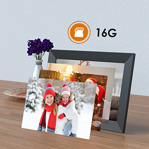 - LARGE BUILT-IN STORAGE - Auto-Rotate And Large Internal Storage: picture frame can automatically rotate photos , which allows you to place the WiFi photo frame in either portrait or landscape mode. Built-in 16GB Memory and supports up to 32GB(not included), empowers a huge capability of storage.
