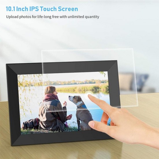 Digital photo frame with HD IPS touch screen display with 1280*800 resolution stays clear in any light, that enables perfect display with families at any angle, recalling your precious memories. Touch screen allows you to set up the frame and view the photos conveniently.