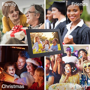 Simple plug and play, the digital picture frame is a perfect gift for your loved ones, family and friends. You can also share the photos and videos to the frame and keep valued memories for your parents and grandparents