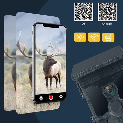 The T180 rechargeable solar panel game camera has built-in WiFi capability and APP control. You can control the camera, adjust settings and view pictures and videos directly from the App in case you mount the camera in a place where it is not easy to install. Use Bluetooth to connect your phone, turn on (and off) WiFi, and enjoy every moment you record at any time.
