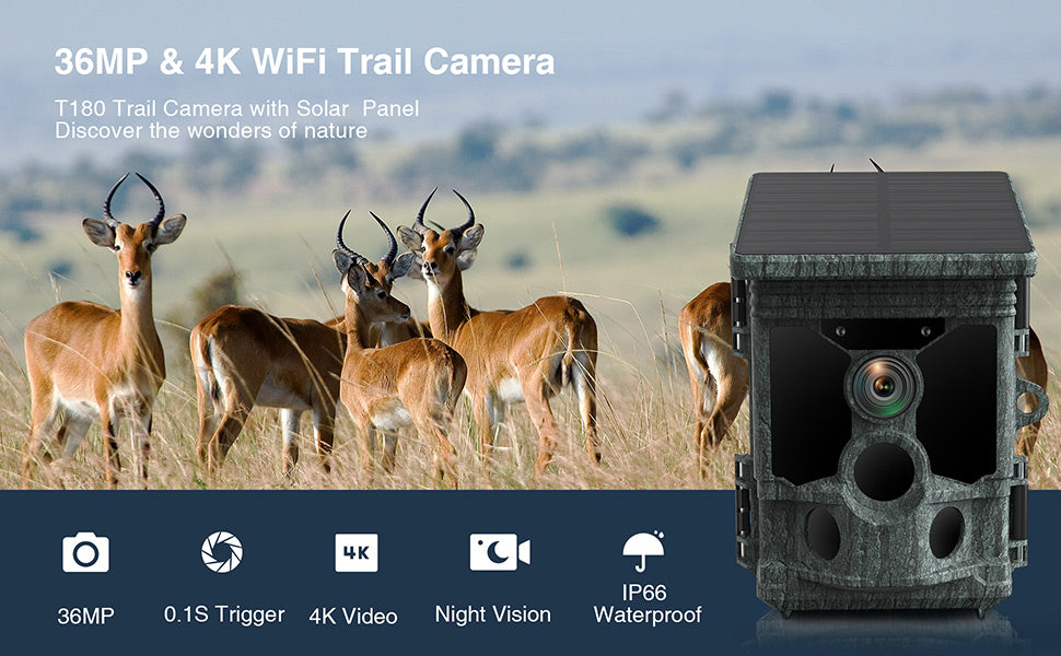 Campark T180 4K 36MP Solar Panel WiFi Bluetooth Trail Game Camera