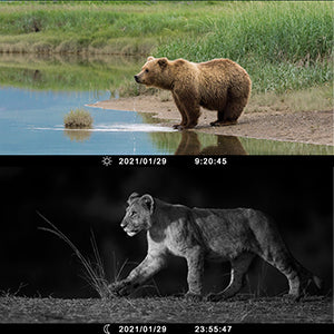 The trail camera equipped with 40pcs 940nm infrared LEDs range 65FT(20m). With the updated no-glow 940nm infrared LEDs, it will not disturb the wildlife and then capture a clear image or video even in the dark night. Once detecting a movement, the hunting camera will be triggered quickly, so that you will never miss a shot.